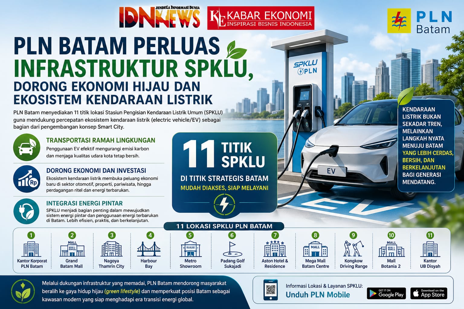 Manajer Humas PLN Batam, Yoga Perdana Sulastama saat dikonfirmasi IDNNews.co.id pada Selasa (28/4/2026) menjelaskan bahwa pembangunan infrastruktur pengisian kendaraan listrik merupakan bagian dari strategi mendukung pengembangan konsep kota cerdas sekaligus transformasi mobilitas perkotaan yang berkelanjutan.